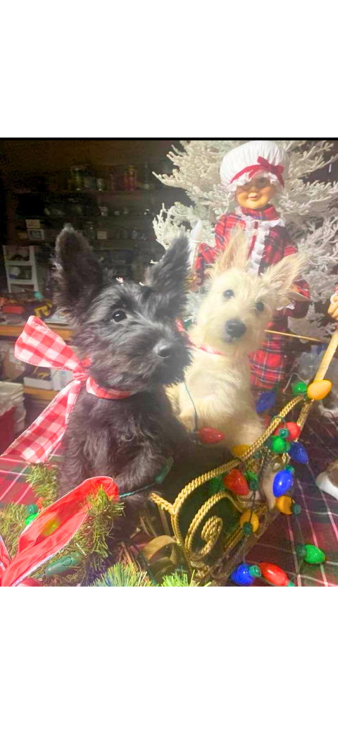 Scotland and Amos are our beloved Scottish Terriers, and they’ve been part of our Christmas story for more than eight years. Much like the vintage treasures in our museum, they carry a gentle charm and personality all their own. Guests often find them nearby — watching curiously from a cozy corner, greeting new friends, or simply soaking in the joy and wonder that fills the room.
